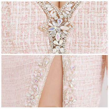 3. 【Angel R/エンジェルアール】ラグジュアリー Vバスト ノースリーブ くびれ透け ツイード ガーリー ビジュータイトミニドレス (AR22201)