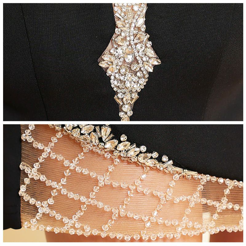 エレガント バストダイヤモチーフ くびれ透け ビジューキャミソールタイトミニドレス