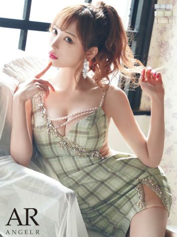 XSあり!周りと差をつける魅惑の一着 【Angel R/エンジェルアール】アシンメトリー デザイン エレガント チェック パールビジュー タイトミニドレス(AR22841)