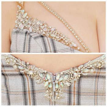 3. 【Angel R/エンジェルアール】キャミソール サイドスリット チェック柄 バストビジュー タイト ひざ丈ドレス (AR23208)