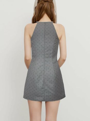 4. 【Angel R/エンジェルアール】ドット柄 ガーリー リボン アシンメトリー ホルターネック パールチェーン フレアミニドレス (AR25249)
