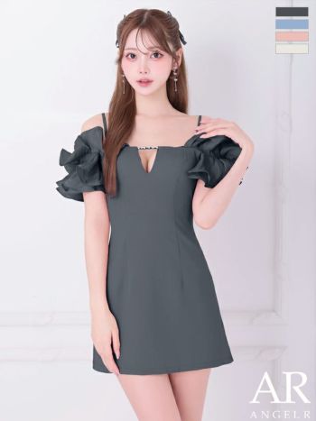 キャバドレス Angel R エンジェルアール バストチャーム ビジュー 半袖 肩あき ガーリー フリルスリーブ フレアミニドレス