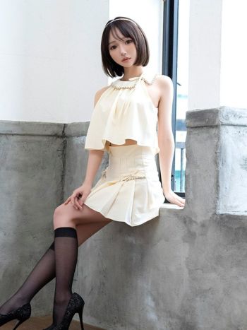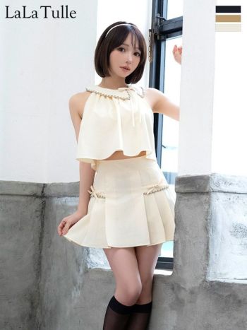 キャバドレス Angel R エンジェルアール セットアップ 襟付き ノースリーブ プリーツスカート リボン ポケット チェーン フレアミニドレス