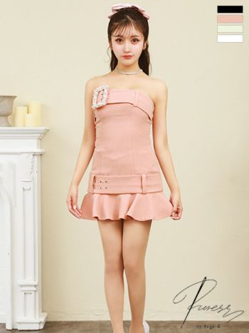キャバドレス ミニドレス PURESS ピュアレス ツイード パール ビジュー バックル ベアトップ ノースリーブ フリル フレアミニドレス