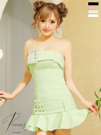 キャバドレス ブランドドレス PURESS ピュアレス パール ビジュー ベルト フリル ツイード ノースリーブ ベアトップ フレアミニドレス