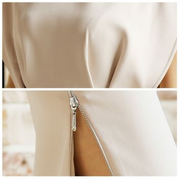 XSあり!下着一枚で着用出来るのでヌーブラが苦手な方でも♪ 【Veautt/ヴュート】大人上品 ノースリーブ ジップデザイン アッパーバルーン シンプル ギャザー膝丈ドレス(VT01228)