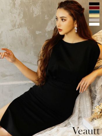 4. 【Veautt/ヴュート】エレガント ノースリーブ ジップデザイン アッパーバルーン シンプル ギャザー膝丈ドレス(VT01228)