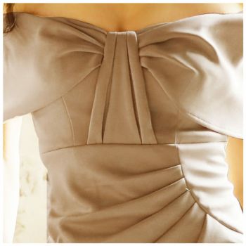 4. 【Veautt/ヴュート】大人上品 ビッグリボン シンプル オフショルダー膝丈ドレス(VT02228)