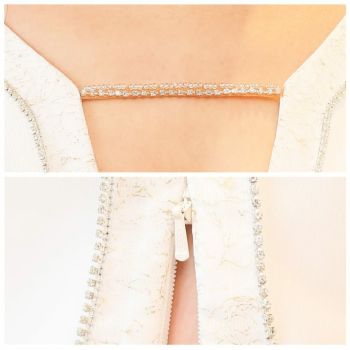 XSあり!ファスナーからご自慢の美脚もアピールできる♪ 【Veautt/ヴュート】シンプル オープンショルダー 袖あり バルーンスリーブビジュー膝丈ドレス(VT03238)