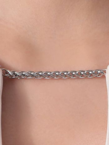 4. 【Veautt/ヴュート】ノースリーブ バストタック チェーン ウエストクロス リボン ジップデザイン バイカラー 膝丈ドレス (VT032601)