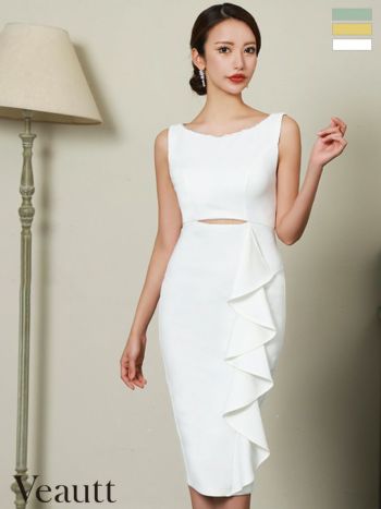 XSあり!さりげない肌魅せが大人SEXY♪ 【Veautt/ヴュート】ウエストカット ビッグフリル ミディアムタイト ひざ丈ドレス(VT082402)