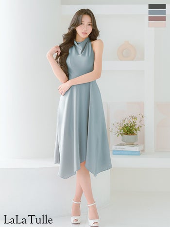 XSあり!上品さを纏う一着♪ 【Veautt/ヴュート】ネックデザイン アシンメトリー ワンカラー ノースリーブ 膝丈ドレス (VT022605)