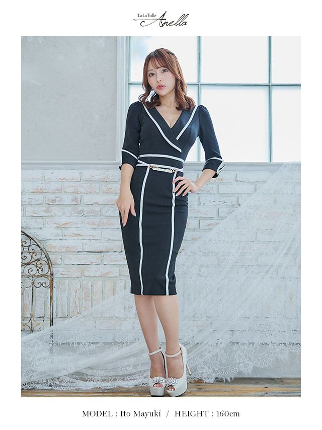 5. 【Anella/アネラ】カシュクール ベルト 五部袖 ひざ丈ドレス