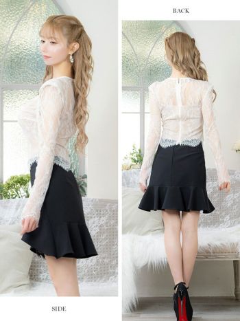4. 【Anella/アネラ】セットアップ レース 長袖 パールボタン バストカット フリル フレアミニドレス