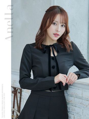 色っぽレディの雰囲気に♪ 【Anella/アネラ】シンプル リボン ボタン セットアップ 長袖 フレアミニドレス