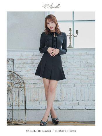 4. 【Anella/アネラ】シンプル リボン ボタン セットアップ 長袖 フレアミニドレス