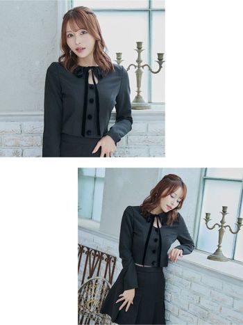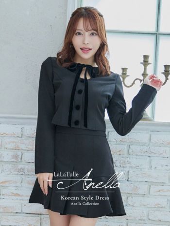 キャバドレス Anella ネックリボン ボタン セットアップ ワンカラー 長袖 プリーツ フレアミニドレス