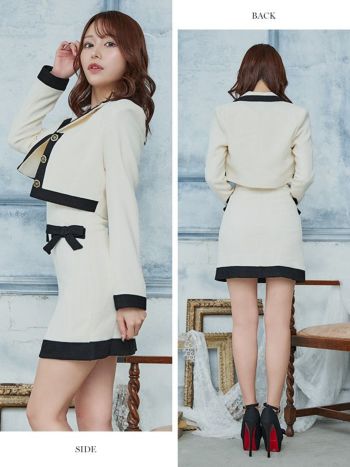4. 【Anella/アネラ】ジャケット付き リボン 千鳥柄 タイトミニドレス スーツ