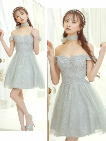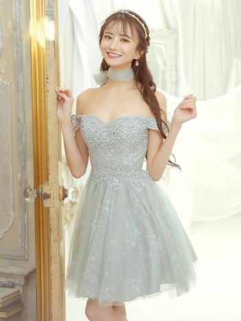 誰よりも可愛くなれる高級なキャバドレス♪ 【LaLaTulle USA/インポート】刺繍レースチュール フレアミニドレス[グレー][XSあり]