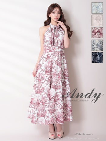 キャバドレス Andy アンディ シフォン カットデザイン ハイネック ホルターネック トワルドゥジュイ Aラインロングドレス