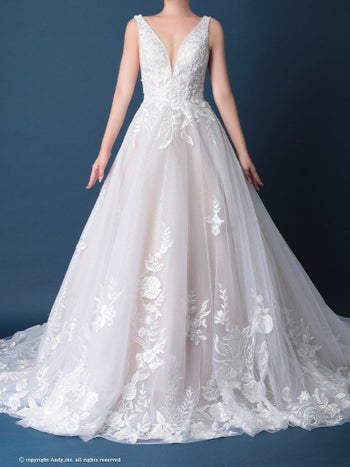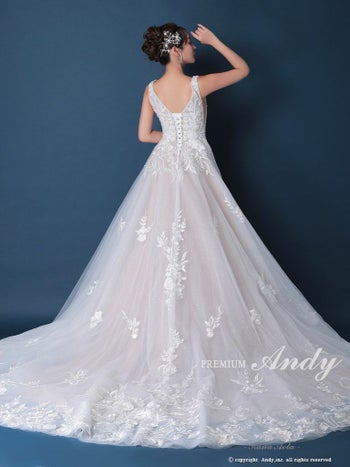 4. 【PREMIUM Andy/プレミアム アンディ】ノースリーブ フラワー 刺繍 シースルー レースアップ バースデー Aラインロングドレス(anw006)