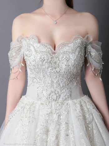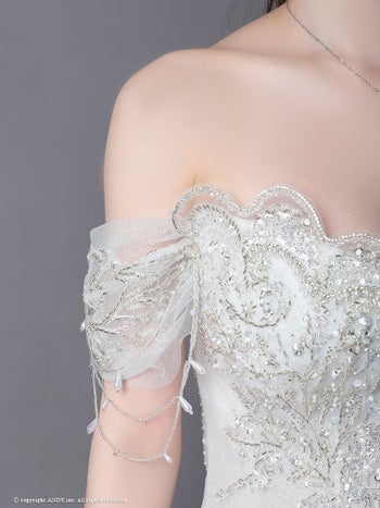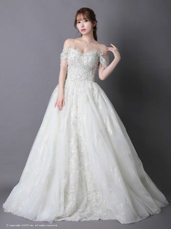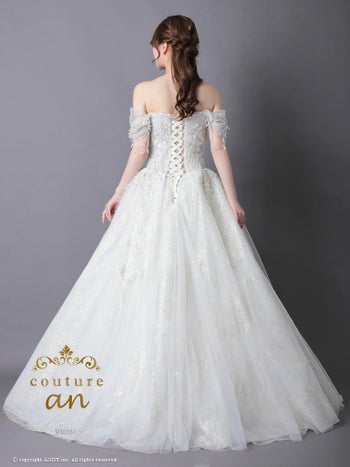 3. 【couture an/クチュール アン】オフショルダー 半袖 シフォン 刺繍 ビジュー レースアップ バースデー Aラインロングドレス(aocwd007)