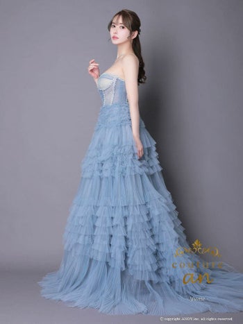 4. 【couture an/クチュール アン】ベアトップ シフォン フリル コルセット風 レースアップ バースデー Aラインロングドレス(aocwd012)