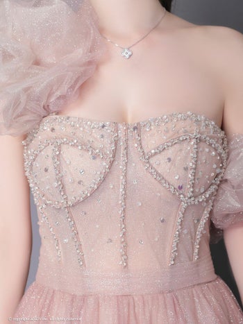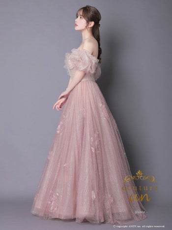 4. 【couture an/クチュール アン】シフォン ベアトップ フリル コルセット風 レースアップ バースデー Aラインロングドレス(aocwd013)