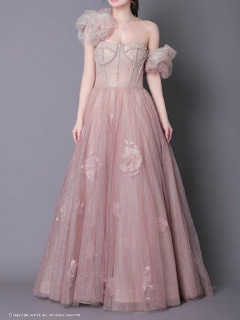 3. 【couture an/クチュール アン】シフォン ベアトップ フリル コルセット風 レースアップ バースデー Aラインロングドレス(aocwd013)