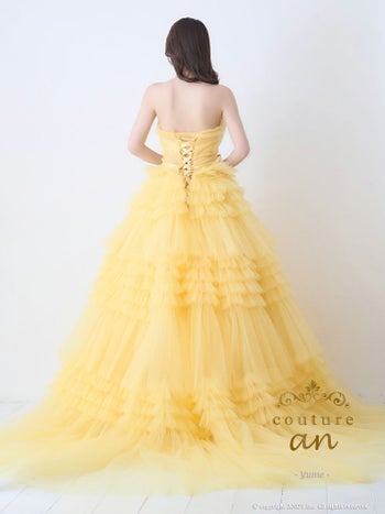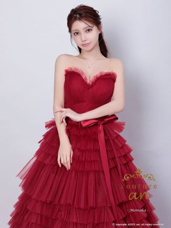 3. 【couture an/クチュール アン】ベアトップ ワンカラー ウエストリボン フリル チュール レースアップ バースデー Aラインロングドレス(aocwd017)