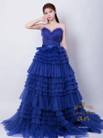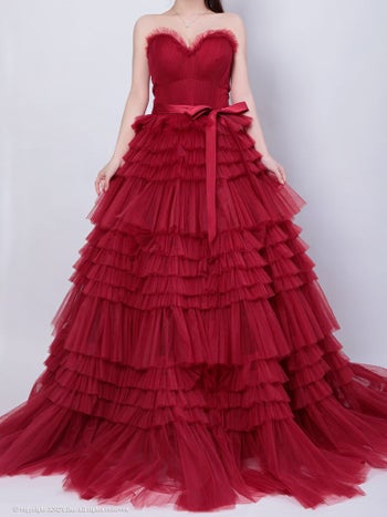 4. 【couture an/クチュール アン】ワンカラー ベアトップ ウエストリボン フリル チュール レースアップ バースデー Aラインロングドレス(aocwd017)