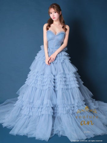 3. 【couture an/クチュール アン】ワンカラー ベアトップ ウエストリボン フリル チュール レースアップ バースデー Aラインロングドレス(aocwd017)
