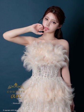 キャバドレス couture an ガーリー ベアトップ スパンコール ビジュー バースデー フェザー Aラインロングドレス