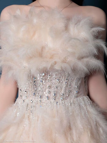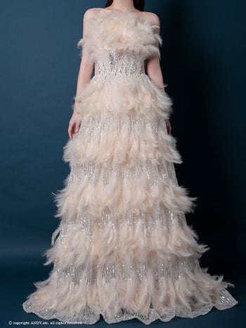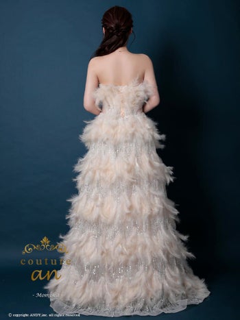 4. 【couture an/クチュール アン】ベアトップ スパンコール ビジュー バースデー フェザー Aラインロングドレス(aocwd040)