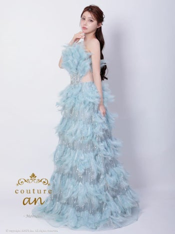 4. 【couture an/クチュール アン】スパンコール ベアトップ ビジュー バースデー フェザー Aラインロングドレス(aocwd040)