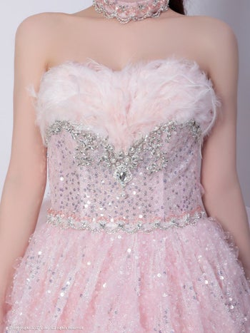 チョーカー付き ベアトップ フェザー バックリボン スパンコール バースデー Aラインロングドレスの詳細画像2