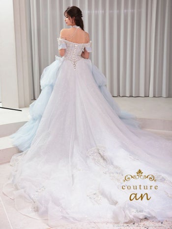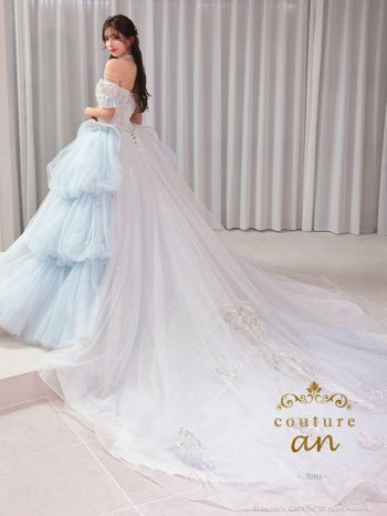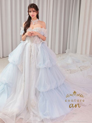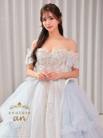 キャバドレス couture an ガーリー オフショルダー チョーカービーズ スパンコール ビジュー バースデー フリル ロングトレーン Aラインロングドレス