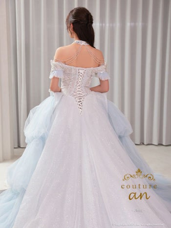 3. 【couture an/クチュール アン】オフショルダー チョーカービーズ スパンコール ビジュー バースデー フリル ロングトレーン Aラインロングドレス(aocwd047)