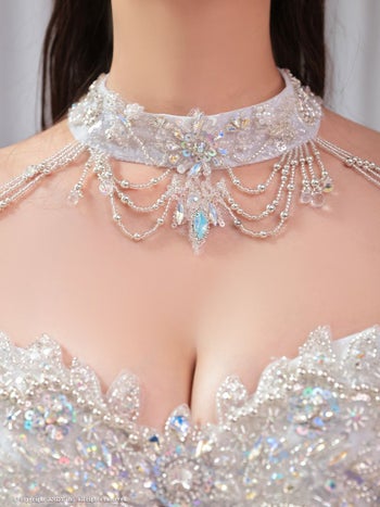 ガーリー オフショルダー チョーカービーズ スパンコール ビジュー バースデー フリル ロングトレーン Aラインロングドレスの詳細画像3