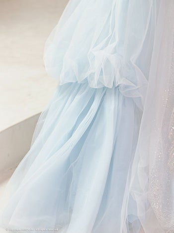 ガーリー オフショルダー チョーカービーズ スパンコール ビジュー バースデー フリル ロングトレーン Aラインロングドレスの全身サイド画像1