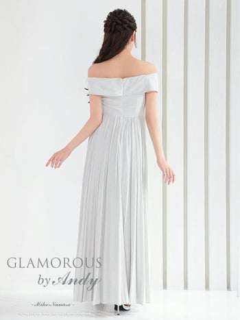 4. 【GLAMOROUS/グラマラス】ワンカラー オフショルダー ラメ カットアウト プリーツ Aラインロングドレス(gmsv860)