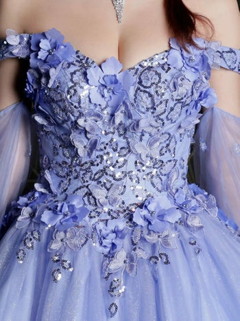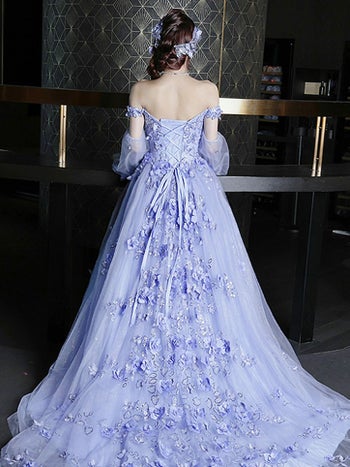 4. 【Angel R/エンジェルアール】レース オフショルダー 長袖 バタフライ フラワー刺繍 バースデー Aラインロングドレス (AR24102)