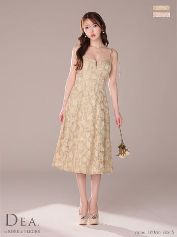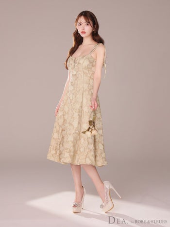 4. 【DEA.by ROBE de FLEURS/ディア】オープンバスト 花柄ジャガード パイピング ショルダーリボン キャミソール ジップデザイン エレガント Aラインロングドレス (DE3282)