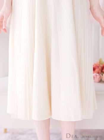 4. 【DEA.by ROBE de FLEURS/ディア】オフショルダー ダブルボタン プリーツ チュール バックル Aラインロングドレス(DE3417)
