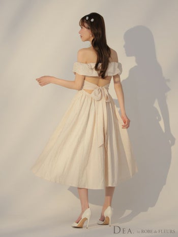 3. 【DEA.by ROBE de FLEURS/ディア】ベルトデザイン ジャガード バックリボン エレガント オフショルダー Aラインロングドレス(DE3449)