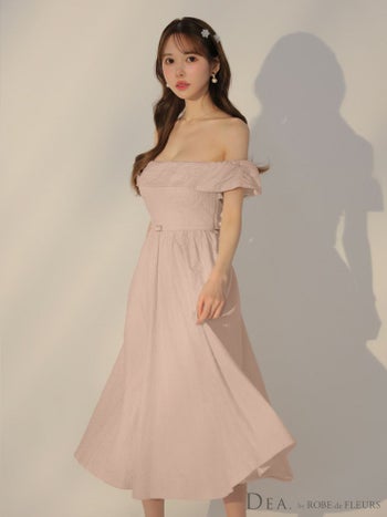 4. 【DEA.by ROBE de FLEURS/ディア】ベルトデザイン ジャガード バックリボン エレガント オフショルダー Aラインロングドレス(DE3449)