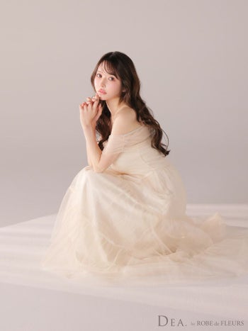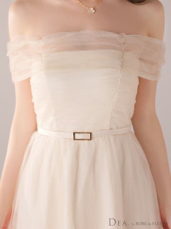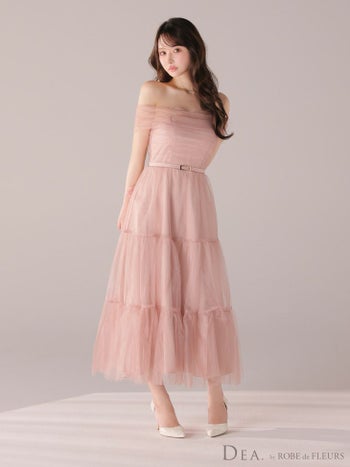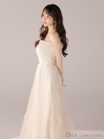 4. 【DEA.by ROBE de FLEURS/ディア】ウエストベルト ティアードスカート ラメチュール オフショルダー フェミニン Aラインロングドレス(DE3481)