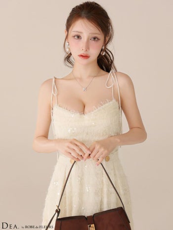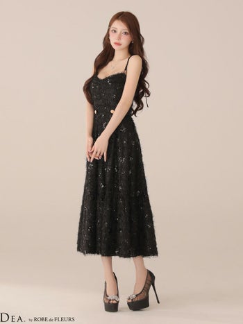 XS~Lあり!スパンコールの輝きが美しい★ 【DEA.by ROBE de FLEURS/ディア】オープンバスト スパンコール エンブロイダリーレース チュール エレガント キャミソール Aラインロングドレス(DE3485)