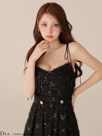 キャバドレス DEA.by ROBE de FLEURS ディア オープンバスト スパンコール エンブロイダリーレース チュール エレガント キャミソール Aラインロングドレス