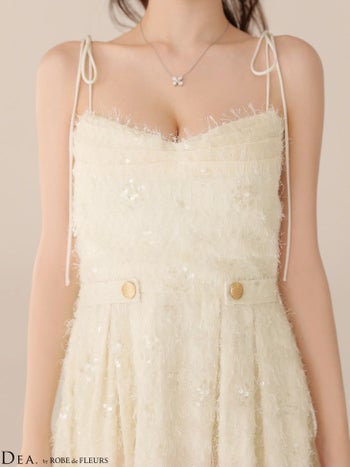 3. 【DEA.by ROBE de FLEURS/ディア】オープンバスト スパンコール エンブロイダリーレース チュール エレガント キャミソール Aラインロングドレス(DE3485)